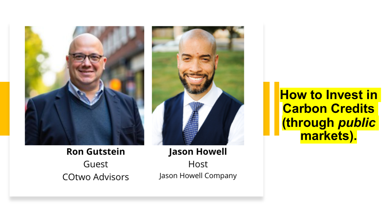 Join a conversation with Ron Gutstein, founder of COtwo Advisors, LLC (CO), (https://www.cotwoadvisors.com/) as we discuss how verified carbon credits through the European Union Allowance inspired the business plan to secure investor backing to support an Exchange Traded Product (ETP) for retail and institutional investors. In our conversation, we (try to) answer the follow questions: